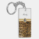 Monogram keychains with pretty diamond jewel rhinestone and wild leopard spots digitally printed and gold monogram emblem you can make your own by personalizing it with any name, initials, or message. Designed as keychains for women or keychains for girls, in a fun single side acrylic keychain. Lets you carry your house or car keys in style.