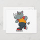 Rhino at Ice skating with Ice skates Postcard