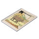 Alphabet letter R is for the Rhino jungle animal walking to a watering hole surrounded by palm trees. Kids storybook wildlife drawing by French artist Benjamin Rabier.