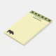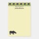 Black and yellow rhinos march across green stripes alternating with loosely “woven” stripes in African colors of red, black and green with yellow accents in the pattern that accents this easy to personalize sticky note pad along with a graphic rhinoceros in silhouette.