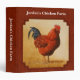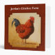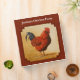 Rhode Island Red Chicken Rooster standing in the dry grass on a warm sunny summer day. Accented with a matching rustic barn red patterned background.