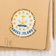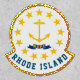 The flag of the state of Rhode Island, United States, is white and consists of a gold anchor in the center (a symbol for hope) surrounded by thirteen gold stars (for the original Thirteen Colonies and Rhode Island's status as the 13th state to ratify the Constitution). A blue ribbon below the anchor bears the state's motto in gold: "HOPE". The flag is frequently depicted with golden fringe around the edges of the flag, although the fringe is never actually on the flag unless it is used in federal-level displays, much like the national flag