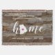 Show some home state pride with this cute rustic faux wood plank throw blanket featuring "home" in white calligraphy script lettering with a silhouette map of the state of Rhode Island standing in for the letter "O." A pink heart illustration inside the state map completes the design; you can change the position of the heart to your home city by opening the design tool and dragging the heart shape to your favorite spot. Personalize with your home city, family name and year established to create a perfect and memorable housewarming gift or addition to your new home.