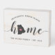 Show some home state pride with this cute wood box sign featuring "home" in black calligraphy script lettering with a silhouette map of the state of Rhode Island standing in for the letter "O." A pink heart illustration inside the state map completes the design; you can change the position of the heart to your home city by opening the design tool and dragging the heart shape to your favorite spot. Personalize with your home city, family name and year established to create a perfect finishing touch for your entryway, or a memorable housewarming gift.