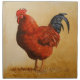 Rhode Island Red Chicken Rooster standing in the dry grass on a warm sunny summer day. Realistic artwork created from an original oil painting by equine and wildlife artist Crista S. Forest.