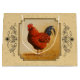 Rhode Island Red Chicken Rooster standing in the dry grass on a warm sunny summer day. Accented with a matching sandy yellow background with a subtle abstract pattern.