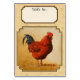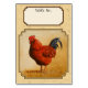 Rhode Island Red Chicken Rooster standing in the dry grass on a warm sunny summer day. Accented with a matching sandy yellow background with a subtle abstract pattern.