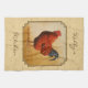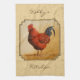 Rhode Island Red Chicken Rooster standing in the dry grass on a warm sunny summer day. Accented with a matching sandy yellow background with a subtle abstract pattern.