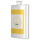 The product is a good size and came exactly as it was pictured. The lid is not attached to the flask, which could be dangerous on drunken nights... The print came out surprisingly well and looks very sharp. Would definitely recommend.
