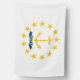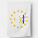 Rhode Island State House Flag has a gold anchor, surrounded by thirteen gold stars, on a field of white. A blue ribbon below the anchor contains the text "HOPE". The 13th state to ratify the Constitution.