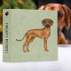 Destei's original cartoon illustration of a cute Rhodesian Ridgeback breed dog. The background color is green with a decorative texture. The texture can be removed and the background color can be changed to any other color, if so wished. There is also a personalizable text area on the spine together with a black paw print silhouette. This design is ideal for any dog owner to store their pet's veterinary records and other important paper work, for example.