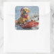 Rhodesian Ridgeback Dog in Sledge Christmas Square Sticker