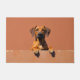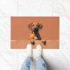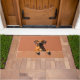 The warm terracotta clay background enhances its natural coat color, creating a bold and welcoming look for any entryway. Designed with extra space at the top and bottom, it allows easy personalization with names, welcome messages, or custom text—making it ideal for unique dog-themed doormats and thoughtful gifts.
