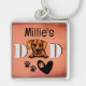 Show your love for your favorite furry family member with a mug that's all yours. Our Rhodesian Ridgeback Peeking Personalized keychain with heart and paw prints will make a thoughtful gift for Dads with a Rhodesian Ridgeback in their life. The custom design features the name of the dog, along with their breed. Personalize with your dogs name.
