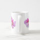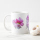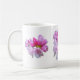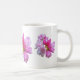This mug is decorated with three elegant pink and magenta rhododendron flowers.