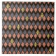 Ceramic Tile with geometric and floral seamless pattern. Silhouette flowers and coral pink colored, gray and golden rhombuses on black background Ceramic Tile. Brown and Coral Pink Collection.