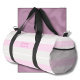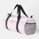 Three-color design with rhythmic stripes. Soft lines in three colors for your sports duffel bag. Add your name or a quote at the front and side. This variant is the pastel color scheme in grey, pink and white.