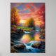 A symphony of motion and color unfolds as a rushing river meanders through a charming landscape. The setting sun paints the sky in hues of fiery red, casting an enchanting glow upon the scene. Nature's dance, both vibrant and serene, captures a moment of pure beauty and captivating wonder.