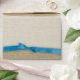 The look of burlap with a blue ribbon printed on this custom envelope. Matching invitations available.