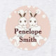 The product design features bunny twins with an off-white ribbon and polka dots. This adorable animal cartoon makes cute and unique clothing labels with personalized text for kids.