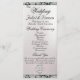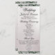 This romantic design features an elegant pearl white background with ribbon and glitter borders, wedding ceremony details & thank you on the front with wedding party members on the back. Available in several colors for your wedding theme. (Ribbon & glitter is simulated in the artwork). Available in several colors for your wedding theme colors. Designed to coordinate with the "Romantic Hearts, Ribbon & Sparkle on Pearl" collection. To change details, click «Personalize». To move the text or change the text size, font, or color click «Click to customize further»