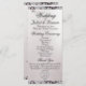 This romantic design features an elegant pearl white background with ribbon and glitter borders, wedding ceremony details & thank you on the front with wedding party members on the back. Available in several colors for your wedding theme. (Ribbon & glitter is simulated in the artwork). Available in several colors for your wedding theme colors. Designed to coordinate with the "Romantic Hearts, Ribbon & Sparkle on Pearl" collection. To change details, click «Personalize». To move the text or change the text size, font, or color click «Click to customize further»