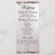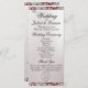This romantic design features an elegant pearl white background with ribbon and glitter borders, wedding ceremony details & thank you on the front with wedding party members on the back. Available in several colors for your wedding theme. (Ribbon & glitter is simulated in the artwork). Available in several colors for your wedding theme colors. Designed to coordinate with the "Romantic Hearts, Ribbon & Sparkle on Pearl" collection. To change details, click «Personalize». To move the text or change the text size, font, or color click «Click to customize further»
