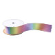Bands of rainbow colors show vertically the entire length of the ribbon. From purple, pink, red, orange, yellow, green blue, the colors repeat in order.