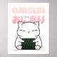 Cute rice ball sushi cat, fat white cat cosplaying as rice ball sushi, also known as onigiri sushi. Suitable for cat lovers and sushi lovers.