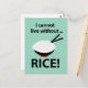 Rice Bowl I Cannot Live Without Rice Postcard original design by Nisha Prabhu. Embrace your love for rice with our 'Rice Bowl: I Cannot Live Without Rice' postcard! This charming design serves as the perfect tribute to your favorite grain. Whether it’s a comforting bowl of jasmine rice or a savory serving of fried rice, this postcard celebrates all the delightful dishes that bring joy to your taste buds. Ideal for kitchen decor, foodie friends, or a fun way to share your culinary passion, this postcard is a must-have for rice enthusiasts.