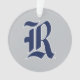 This design showcases the distinguished letter "R," representing Rice University. Styled in a traditional serif font with a bold and elegant design, the emblem is navy blue, symbolizing the university's official colors. This iconic representation is often associated with Rice's commitment to academic excellence and its storied history in athletics and education.