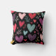 Rich Black Playful Hand-Drawn Hearts Throw Pillow