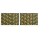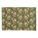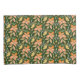 A vibrant floral pattern featuring peach and orange flowers with yellow accents on a dark green background. Surrounding leaves add contrast and richness.