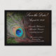 Rich peacock feather design features close-up photography image of teal, gold and green peafowl feather lying on a bed of rich, fresh green moss. Perfect for a summer wedding or special occasion. Wedding invitation and matching accessory set. © www.CustomInvitesOnline.com