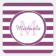 Rich Purple Monogram with Chunky Graphic Stripes Square Sticker