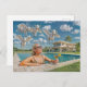 Rich Woman Watches Flying Cows from Pool Holiday Postcard