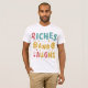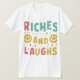 This playful t-shirt design showcases a whimsical treasure chest overflowing with gold coins, gems, and laughter, represented by cheerful emojis. The bold phrase "Riches and Laughs" wraps around the graphic, emphasizing the joy of life’s simple pleasures over material wealth. Perfect for those who value humor and happiness, this shirt is a lighthearted reminder that true richness comes from laughter and love.