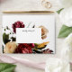 Romantic photographed florals in rich burgundy, magenta and orange peach tones with editable text on front and back