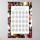 Seating chart organized by table number. Romantic rich color floral photographed graphics.
