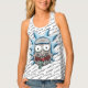 Women's All-Over Print Racerback Tank Top, White Piping, S