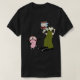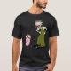 My 11 yo wore adult XL (5’7” 165#). The 8yo is small framed. She wore adult small and tied it in the back. Grandma wore adult large with long sleeve shirt underneath. Tall girl adult medium. Dark haired male adult large. Good quality dark Heather gray, Gildan brand shirt. -it was next up from basic choice and cost about $20 per shirt. Not too thick or thin. Washed and dried well, no major shrinkage. Not see-through. Can wear a bra under it fine. Screen print is just as shown and well done, front and back.