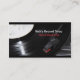 An old vinyl record playing on a turntable with a black stripe on the top and bottom of design. Change the text with your own for a custom business card.