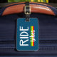 Happiness in life comes simply, just ride bikes. This colorful design has rainbow stripes and large text.