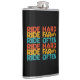 Well made flask, a little better than I had expected. Flask came in clear plastic box which gave it a nice presentation when I took it out of the zazzle packaging. Image is not printed on flask but on sticker. Don't know how this will hold up I haven't used it yet. This would make a Great gift! I plan to purchase more for friends! Cheers. I thought a little brighter than computer. Very crisp, writing wasn't
