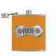 Well made flask, a little better than I had expected. Flask came in clear plastic box which gave it a nice presentation when I took it out of the zazzle packaging. Image is not printed on flask but on sticker. Don't know how this will hold up I haven't used it yet. This would make a Great gift! I plan to purchase more for friends! Cheers. I thought a little brighter than computer. Very crisp, writing wasn't