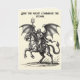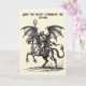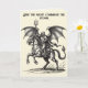 A striking black-and-white engraving captures Abigor, the cloaked demon rider, charging forward atop a fierce chimera. With wings spread wide and trident raised, intricate cross-hatching and bold linework evoke raw motion, gothic tension, and mythic power.