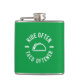 Well made flask, a little better than I had expected. Flask came in clear plastic box which gave it a nice presentation when I took it out of the zazzle packaging. Image is not printed on flask but on sticker. Don't know how this will hold up I haven't used it yet. This would make a Great gift! I plan to purchase more for friends! Cheers. I thought a little brighter than computer. Very crisp, writing wasn't