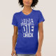 My overall review is that the T-shirt is nice, it fits true to size however the font is significantly smaller than advertised and you can't read it. The printing is unreadable and there is a strain to read it. It does not look like the advertised product. Maybe the shirt color is darker or a larger more visible font should have been used. Photos with and without flash and font is barely legible.