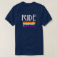 Happiness in life comes simply, just ride bikes and ride them proud. This colorful design has rainbow stripes and large text.