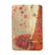 Against the backdrop of a lone maple in a hillside, bright orange and yellow autumn leaves float on the breeze.